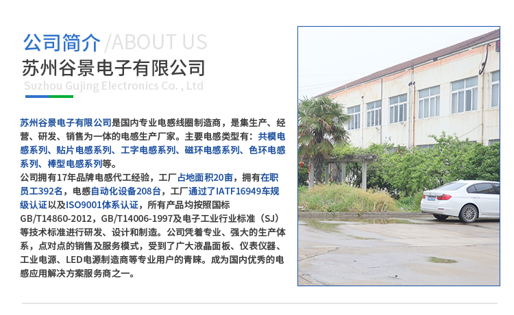 蘇州谷景電子有限公司,一家從事貼片電感,色環(huán)電感,工字電感,磁環(huán)電感,線圈電感,貼片磁珠,共模濾波器,定制電感服務(wù)的電感廠家,電感生產(chǎn)商。