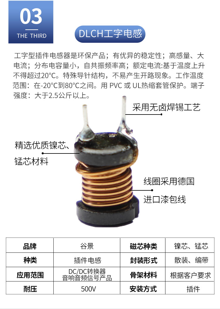 DLGBX工字電感:尺寸:可依客戶要求定制;感量:1uH-100mH;精度:J級(±10%)、K級(±10%)、M級(±20%);電流量:1mA-20A(可定制);特點:小體積,高儲能;適用于:電視、電源供應(yīng)器、LED照明等。詳情咨詢:0512-65368862。工字電感,工字電感廠家,工字電感0406,工字電感0608,工字電感0810,工字電感0912,工字電感1010,工字電感1012,屏蔽工字電感,47uh工字電感,33uH工字電感,220uH工字電感,工字電感生產(chǎn)廠家,電感定制,屏蔽工字電感,杭州工字電感,南京工字電感