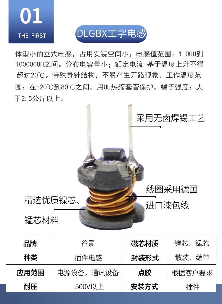 DLGBX工字電感:尺寸:4.5*7.0-18.0*20.0;感量:1uH-100mH;精度:J級(±10%)、K級(±10%)、M級(±20%);電流量:25mA-16.5A;特點:小體積,高儲能;適用于:電視、電源供應(yīng)器、LED照明等。詳情咨詢:0512-65368862。工字電感,工字電感廠家,工字電感0406,工字電感0608,工字電感0810,工字電感0912,工字電感1010,工字電感1012,屏蔽工字電感,47uh工字電感,33uH工字電感,220uH工字電感,工字電感生產(chǎn)廠家,電感定制,屏蔽工字電感,杭州工字電感,南京工字電感