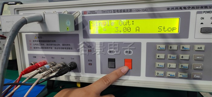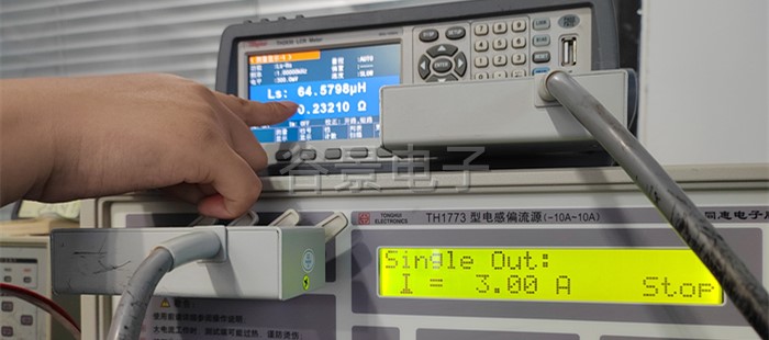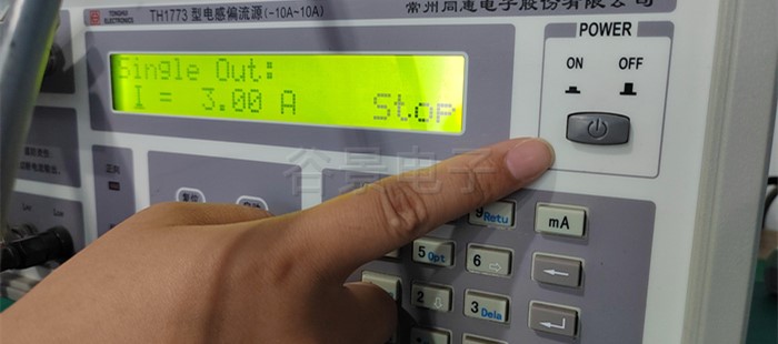 4、按測試儀器上的紅色啟動按鈕,開始加載電流,此時能看到感值隨著電流的變化在變化,這個時候要做好相應(yīng)的數(shù)據(jù)記錄;