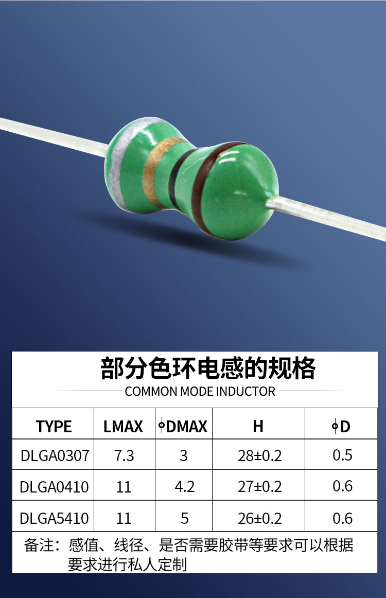DLGA0510色環(huán)電感:尺寸:11.0*5.0;感量:470uH-10mH;精度:J級(jí)(±5%)、K級(jí)(±10%)、M級(jí)(±20%);電流量:25mA-126mA;特點(diǎn):高Q值,重量輕,自共振頻率高;適用于:電視、DVD、計(jì)算機(jī)、通訊產(chǎn)品等。詳情咨詢(xún):0512-65368862。